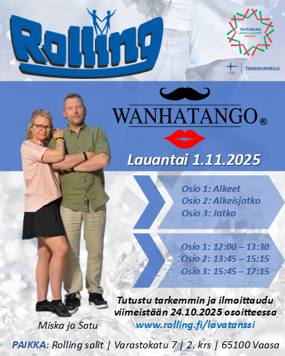 Järjestämme räätälöityjä häätanssikursseja pareille ja pienryhmille. Lisätietoja: hannu.haavisto@rolling.fi